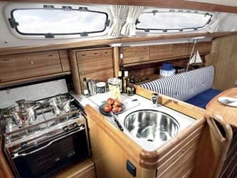 Navigation:Kompass, Echolot, Logge, Windex, UKW-Seefunk mit DSC, Kartenplotter, Hafenhandbücher, Seekarten, Navigationsbesteck, Fernglas, elektrische Windmessanlage, Handpeilkompass