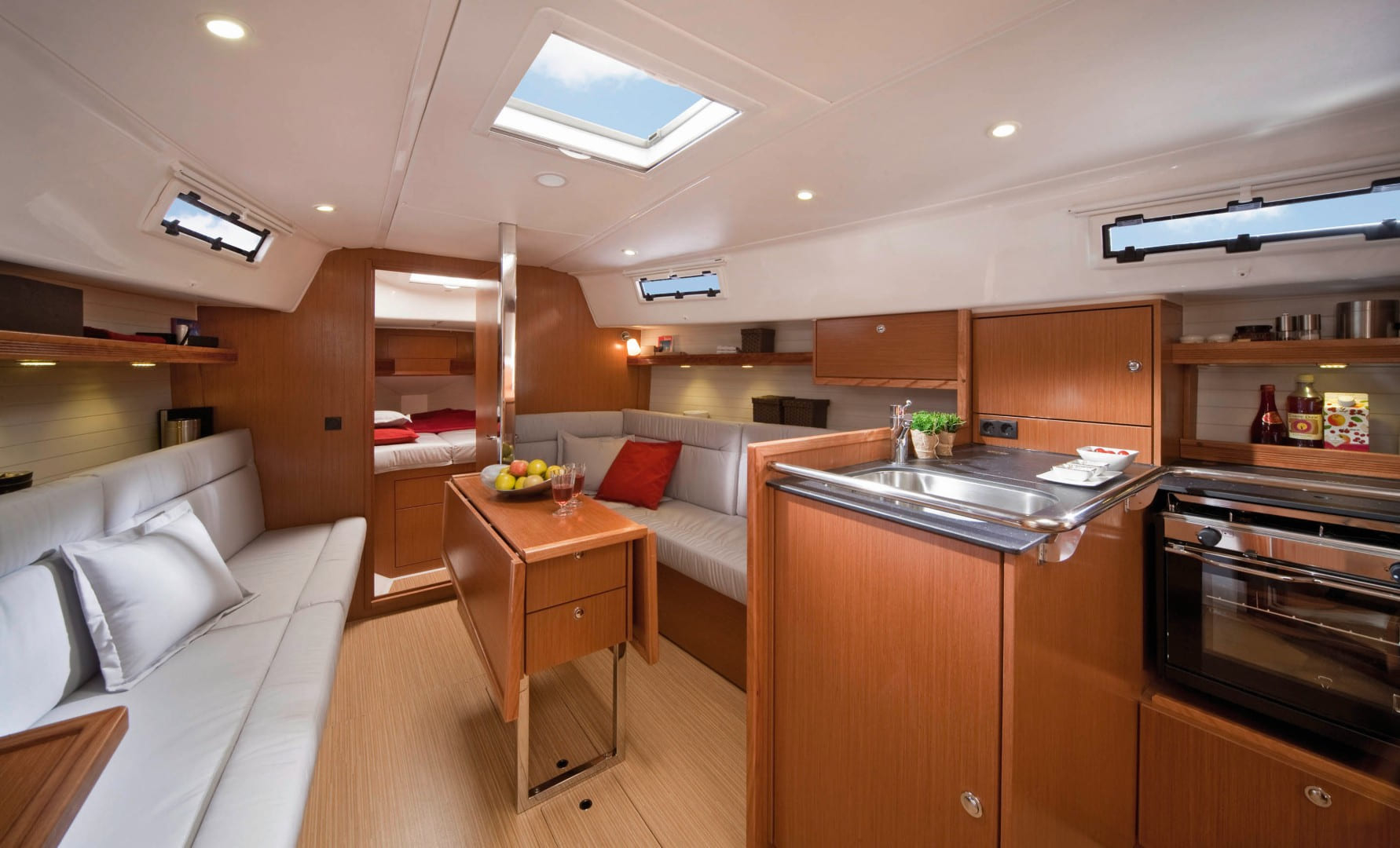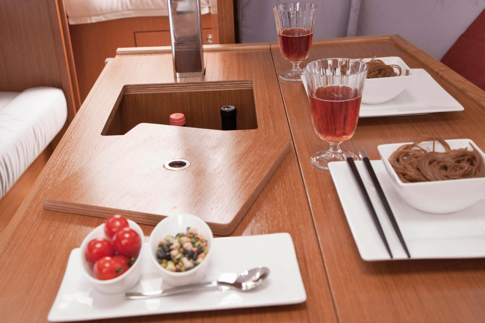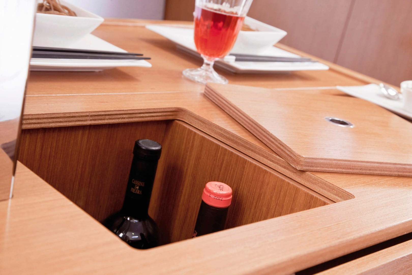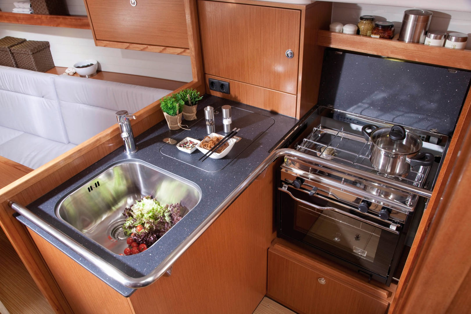 Navigation:Kompass, Echolot, Logge, Windex, UKW-Seefunk mit DSC, Kartenplotter, Hafenhandbücher, Seekarten, Navigationsbesteck, Fernglas, elektr. Windmessanlage, Handpeilkompass, Autopilot