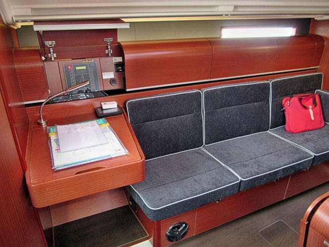 Navigation:Kompass, Echolot, Logge, Windex, UKW-Seefunk mit DSC, Kartenplotter, Seekarten, Hafenhandbücher, Navigationsbesteck, Handpeilkompass, Fernglas, Autopilot, AIS