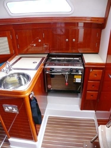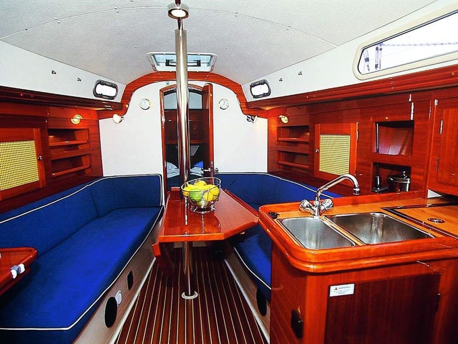 Weiteres:Pinnensteuerung, Warmluftheizung, Stereo Radio mit CD, Sprayhood, Festmacher, Fender, Bootshaken, Bordwerkzeug, Anker mechanisch, begehbare Backskiste