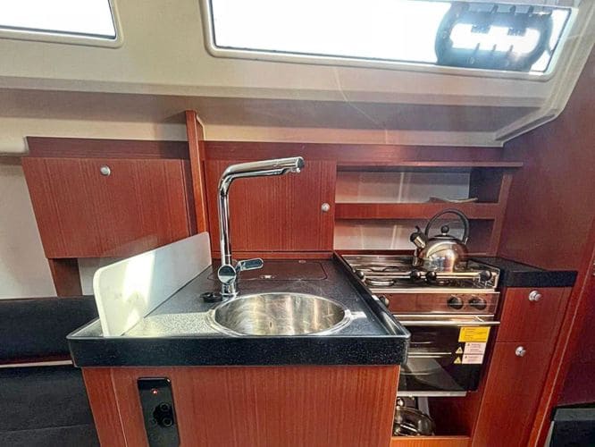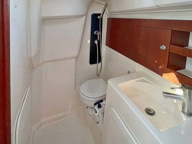Weiteres:Fender, Festmacher, Bordwerkzeug, Bootshaken, Sprayhood, Radsteuerung, Heizung, Dusche, Selbstwendefock, Lattengroß