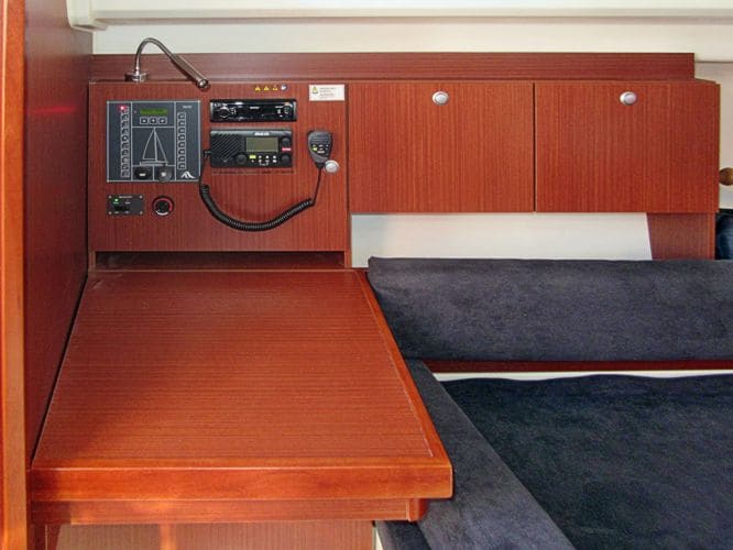 Navigation:Kompass, Echolot, Logge, Windex, UKW-Seefunk, Kartenplotter im Cockpit, Autopilot, Seekarten, Hafenhandbücher, Navigationsbesteck, Fernglas, Handpeilkompass, AIS