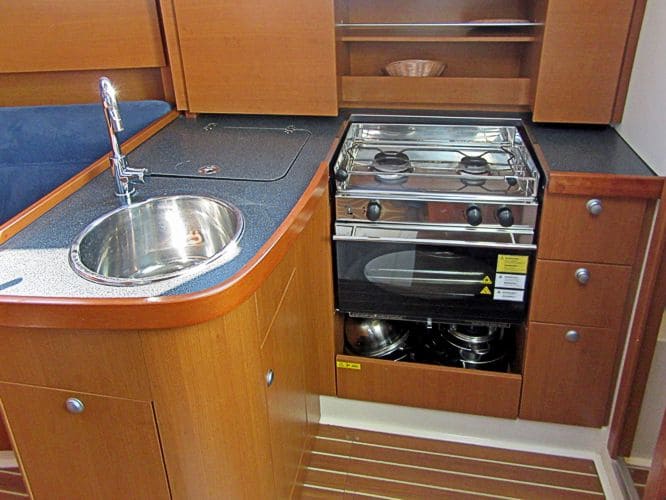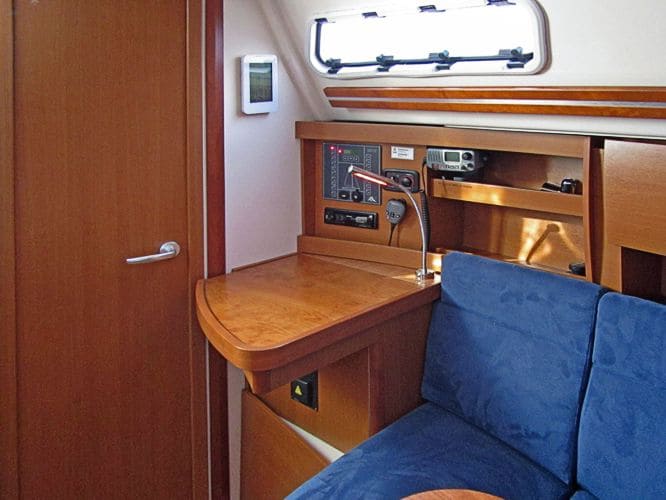 Elektrik:220 V- Landanschluss, Ladegerät, elektrische Bilge- und Druckwasserpumpe, Volt- und Amperemeter, Radio/CD