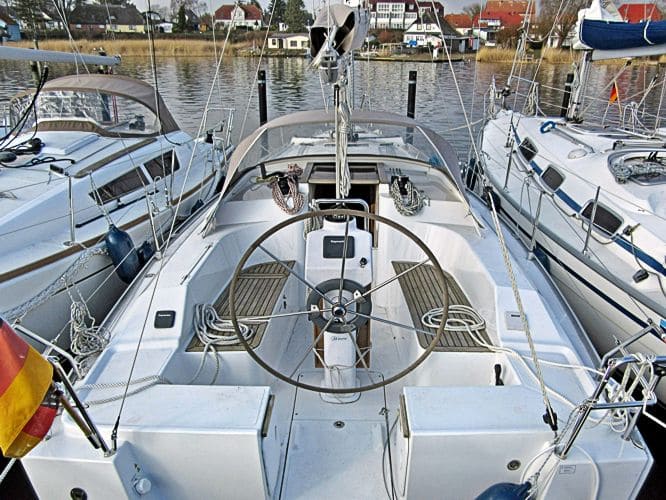 Weiteres:Fender, Festmacher, Bordwerkzeug, Bootshaken, Sprayhood, Radsteuerung, Heizung, Dusche, Selbstwendefock