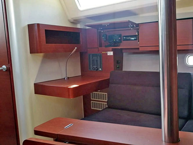 Navigation:Kompass, Echolot, Logge, Windex, UKW-Seefunk, Kartenplotter, Autopilot, Seekarten, Hafenhandbücher, Navigationsbesteck, Fernglas, Handpeilkompass, AIS