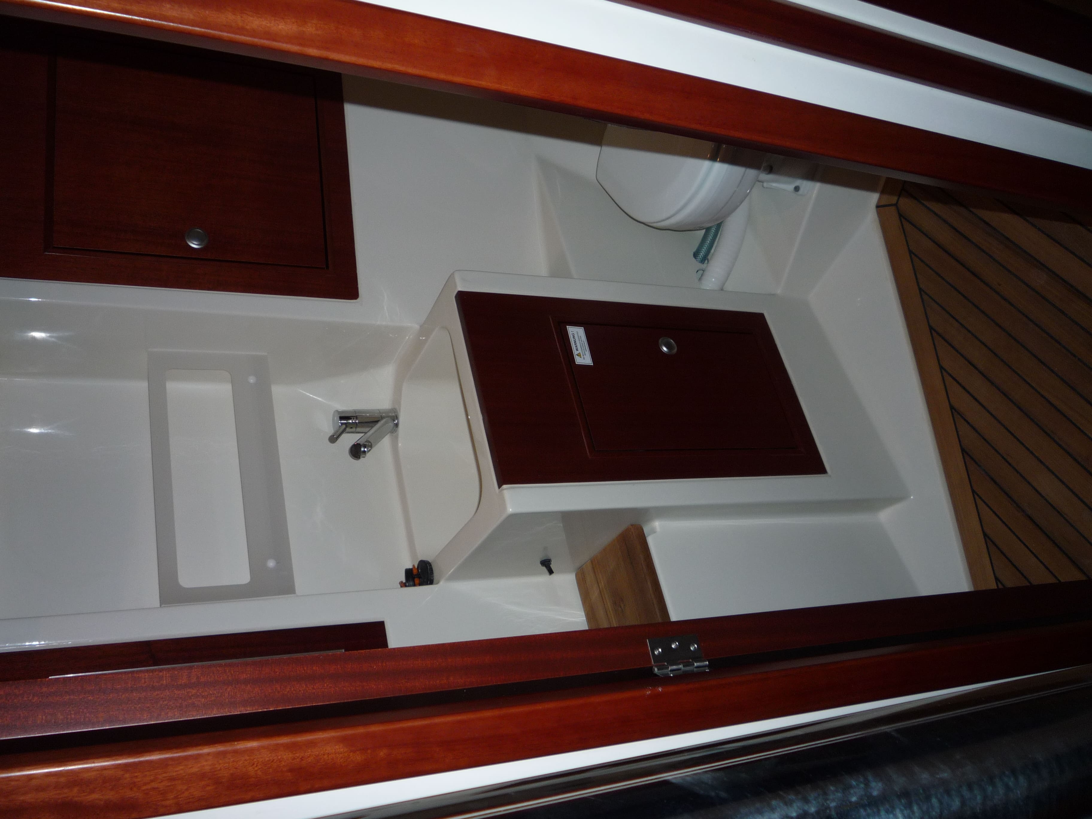 Elektrik:220 V- Landanschluss, Ladegerät, elektrische Bilge- und Wasserpumpe, Volt- und Amperemeter, Radio/CD