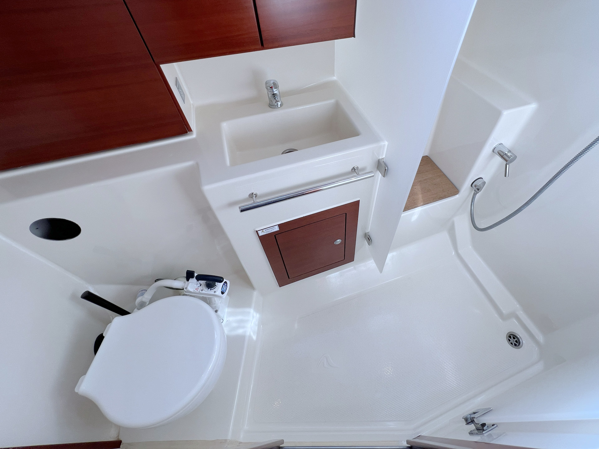 Sicherheit:Ankerball, Automatikwesten, Bootsmannstuhl, Elektrische Lenzpumpe, Erste-Hilfe-Kasten, Feuerlöscher, Handlenzpumpe, Kappbeil, Leckstopfen, Lifebelts, Nebelhorn, Notsignale, Radarreflektor, Rettungsmittel lt. Vorschrift, Rettungsring, Taschenlampe, UKW-Funk mit DSC, Wantenschneider