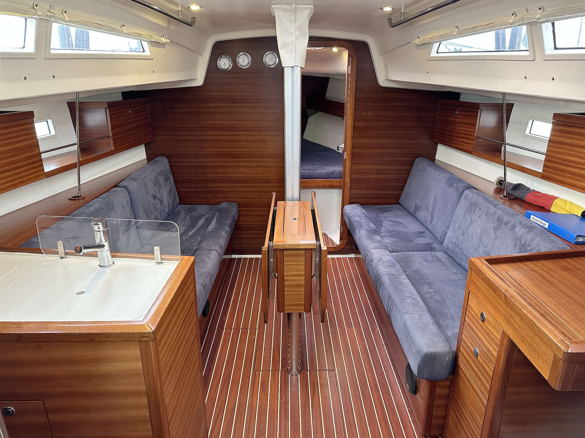 Weiteres:Sprayhood, Bug- und Heckkorb, doppelte Seereling, Positionsbeleuchtung, BSH-zugel. 3-Farben-Seglerlaterne, Dampferlicht elektr., Ankerleuchte, Schlagpütz, 2 Anker mit Kette oder Bleiankerleine, Bootshaken, Decksbürste, 4-6 Fender, Ankerball , Kegel , 4 Festmacher, 30m Schleppleine, Bullentalje, Groß- und Fockschot, 2 Schotwinschen, Wantenschneider.