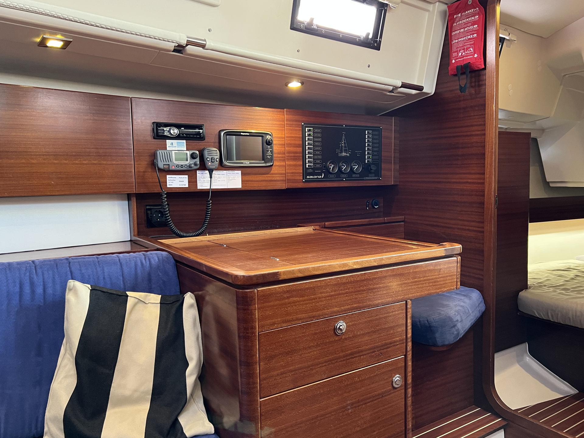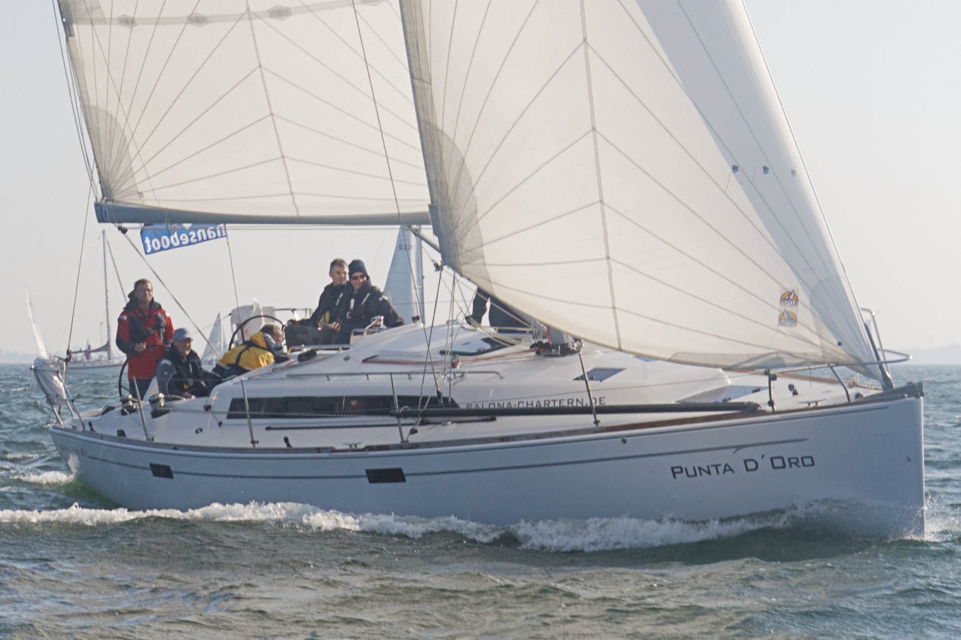 Weiteres:Sprayhood, Bug- und Heckkorb, doppelte Seereling, Positionsbeleuchtung, BSH-zugel. 3-Farben-Seglerlaterne, Dampferlicht elektr., Ankerleuchte, Schlagpütz, 2 Anker mit Kette oder Bleiankerleine, Bootshaken, Decksbürste, 4-6 Fender, Ankerball , Kegel , 4 Festmacher, 30m Schleppleine, Bullentalje, Groß- und Fockschot, 2 Schotwinschen, Wantenschneider.