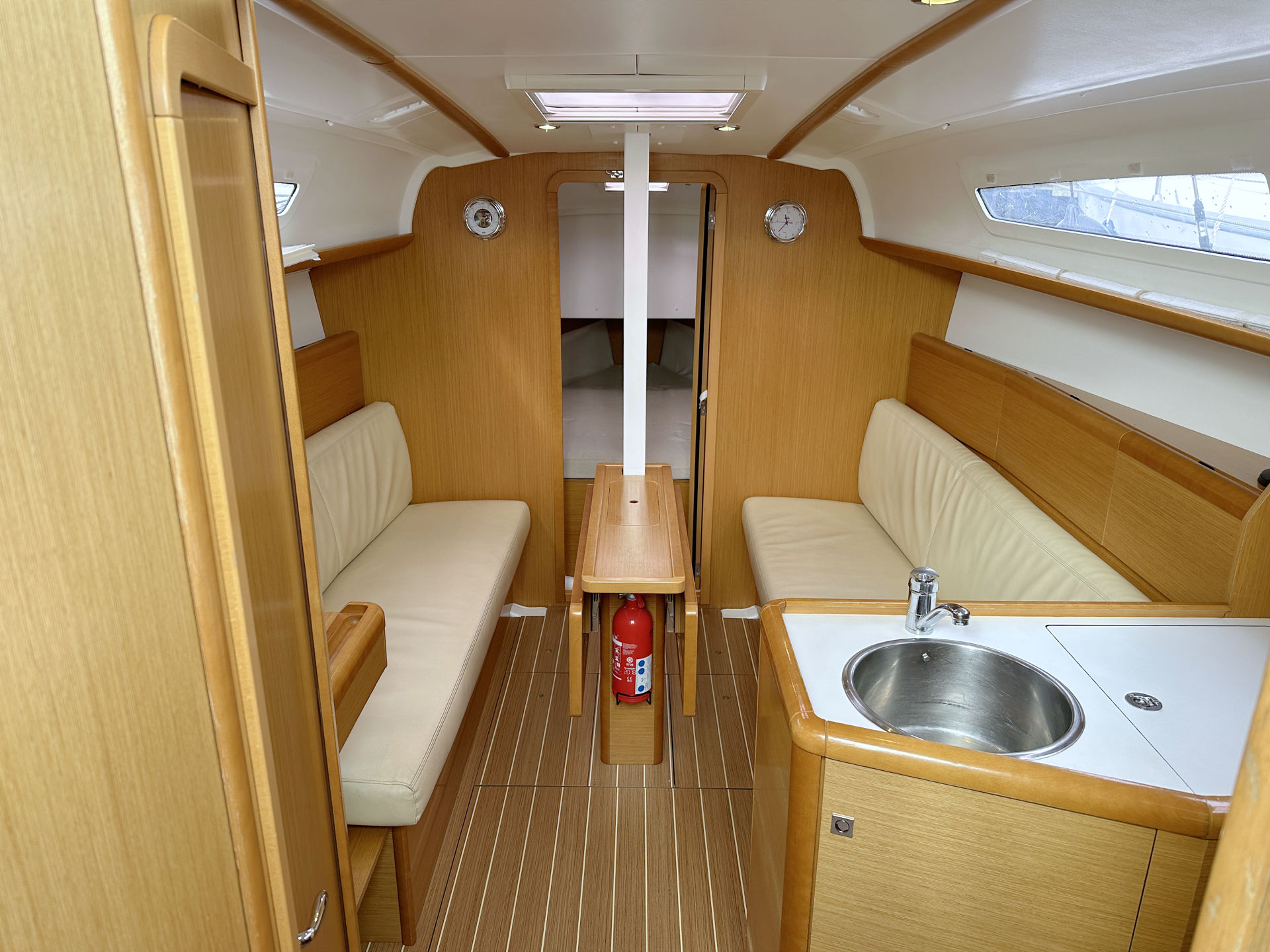 Weiteres:Sprayhood, Bug- und Heckkorb, doppelte Seereling, Positionsbeleuchtung, BSH-zugel. 3-Farben-Seglerlaterne, Dampferlicht elektr., Ankerleuchte, Schlagpütz, 2 Anker mit Kette oder Bleiankerleine, Bootshaken, Decksbürste, 4-6 Fender, Ankerball , Kegel , 4 Festmacher, 30m Schleppleine, Bullentalje, Groß- und Fockschot, 2 Schotwinschen, Wantenschneider.