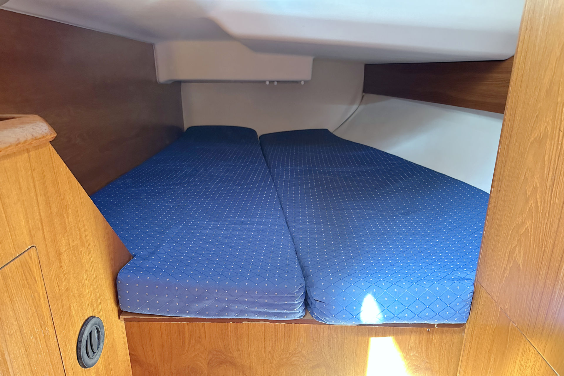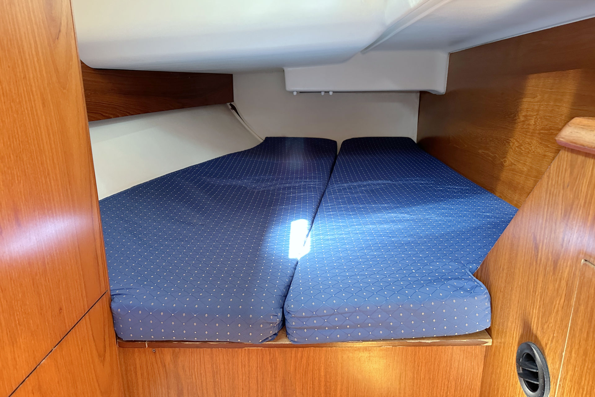 Weiteres:Sprayhood, Bug- und Heckkorb, doppelte Seereling, Positionsbeleuchtung, BSH-zugel. 3-Farben-Seglerlaterne, Dampferlicht elektr., Ankerleuchte, Schlagpütz, 2 Anker mit Kette oder Bleiankerleine, Bootshaken, Decksbürste, 4-6 Fender, Ankerball , Kegel , 4 Festmacher, 30m Schleppleine, Bullentalje, Groß- und Fockschot, 2 Schotwinschen, Wantenschneider.