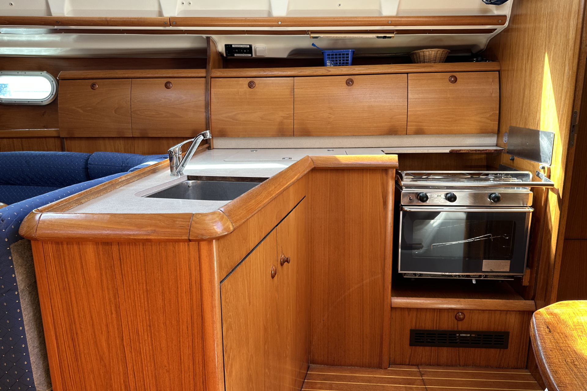 Navigation:Plotter, Autopilot, Windmessanlage, elektronisches Sumlog und Echolot, Steuerkompaß beleuchtet, Fernglas mit integriertem Peilkompaß, Zirkel, Kursrechner, 2 Dreiecke, Barometer, Uhr.