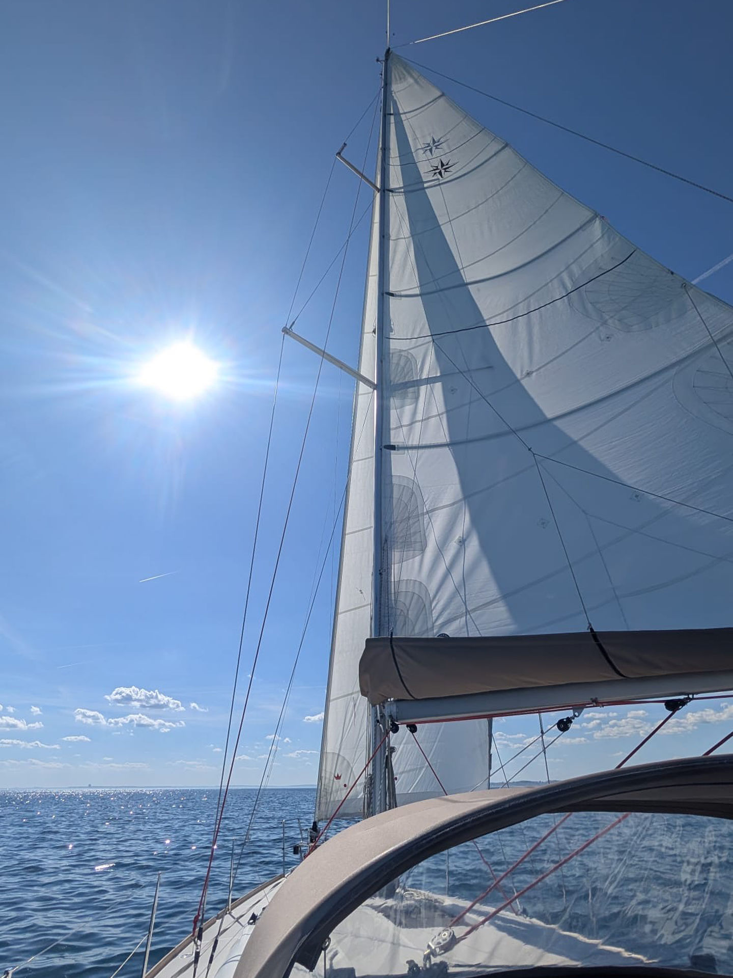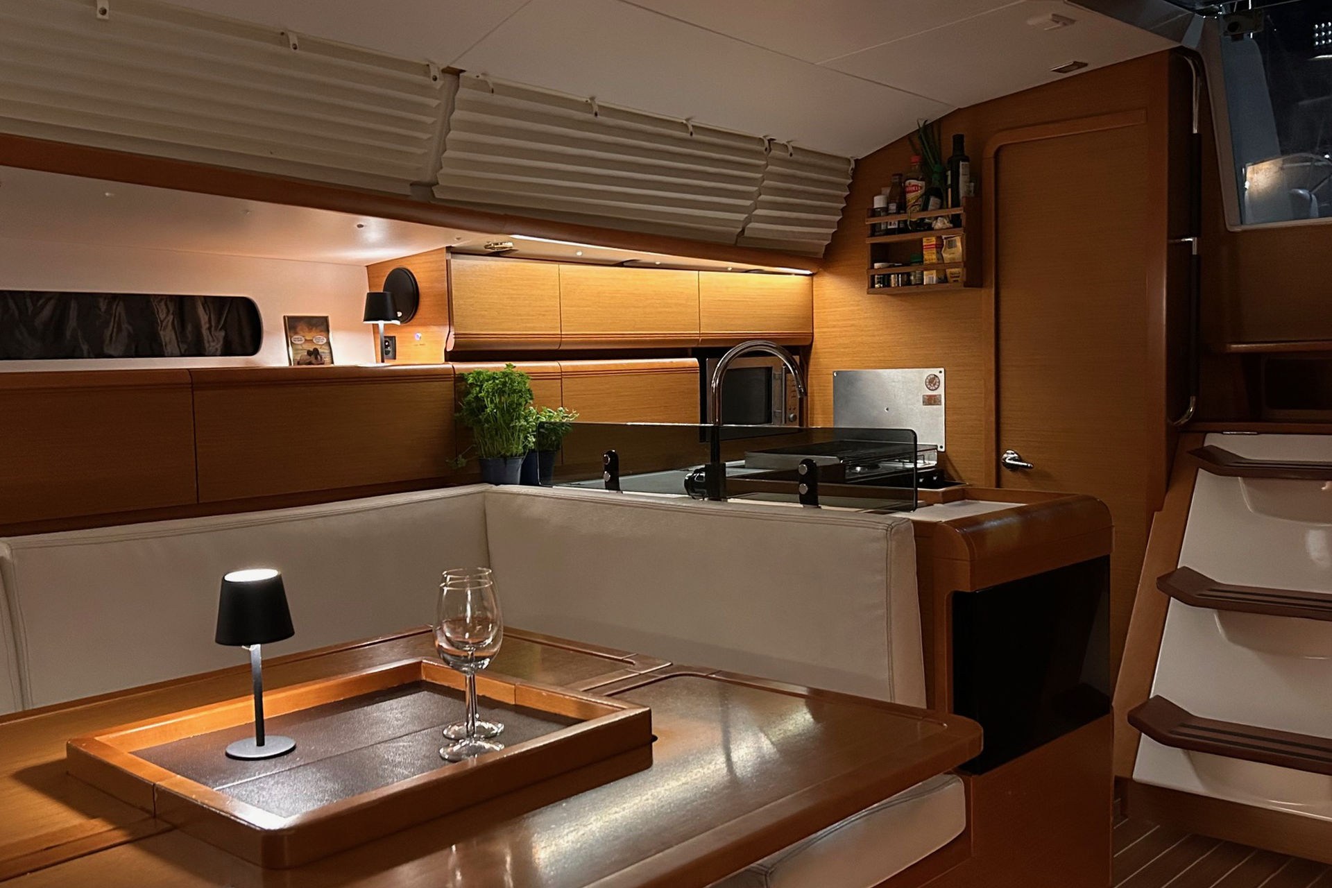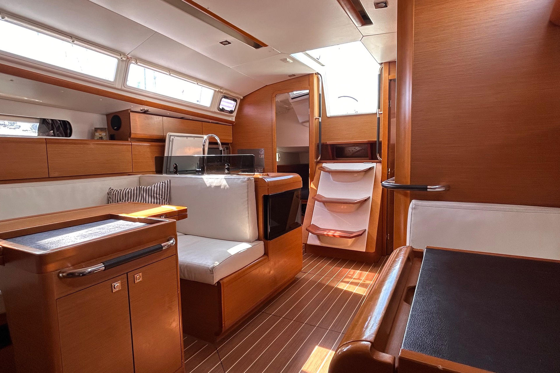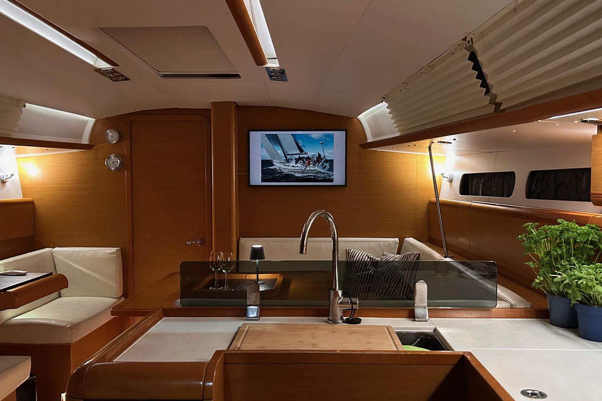 Navigation:Plotter, Autopilot, Windmessanlage, elektronisches Sumlog und Echolot, Steuerkompaß beleuchtet, Fernglas mit integriertem Peilkompaß, Zirkel, Kursrechner, 2 Dreiecke, Barometer, Uhr.