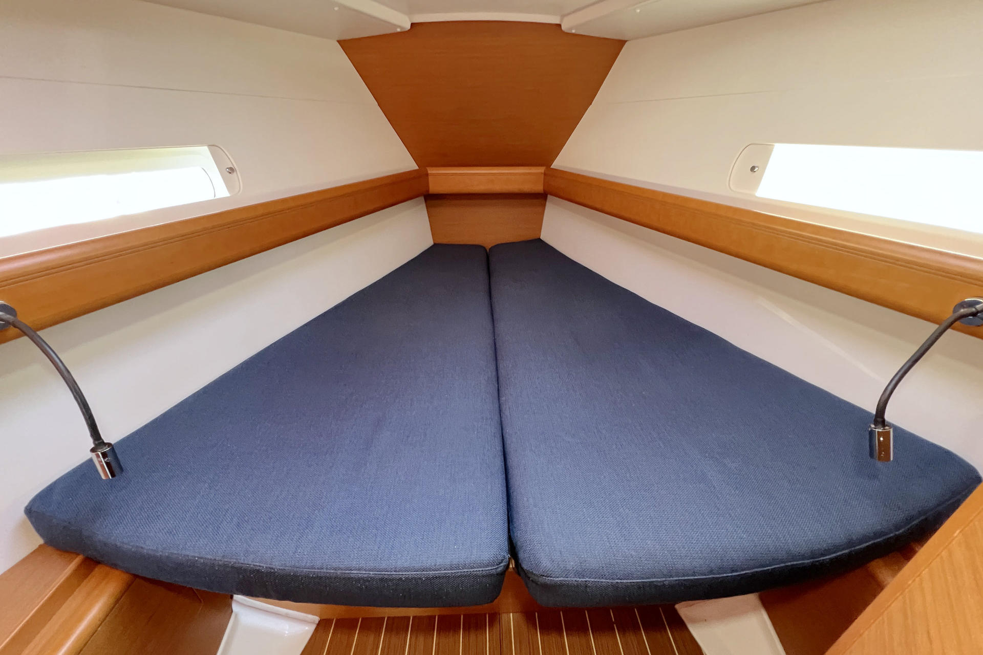 Weiteres:Sprayhood, Bug- und Heckkorb, doppelte Seereling, Positionsbeleuchtung, BSH-zugel. 3-Farben-Seglerlaterne, Dampferlicht elektr., Ankerleuchte, Schlagpütz, 2 Anker mit Kette oder Bleiankerleine, Bootshaken, Decksbürste, 4-6 Fender, Ankerball , Kegel , 4 Festmacher, 30m Schleppleine, Bullentalje, Groß- und Fockschot, 2 Schotwinschen, Wantenschneider.