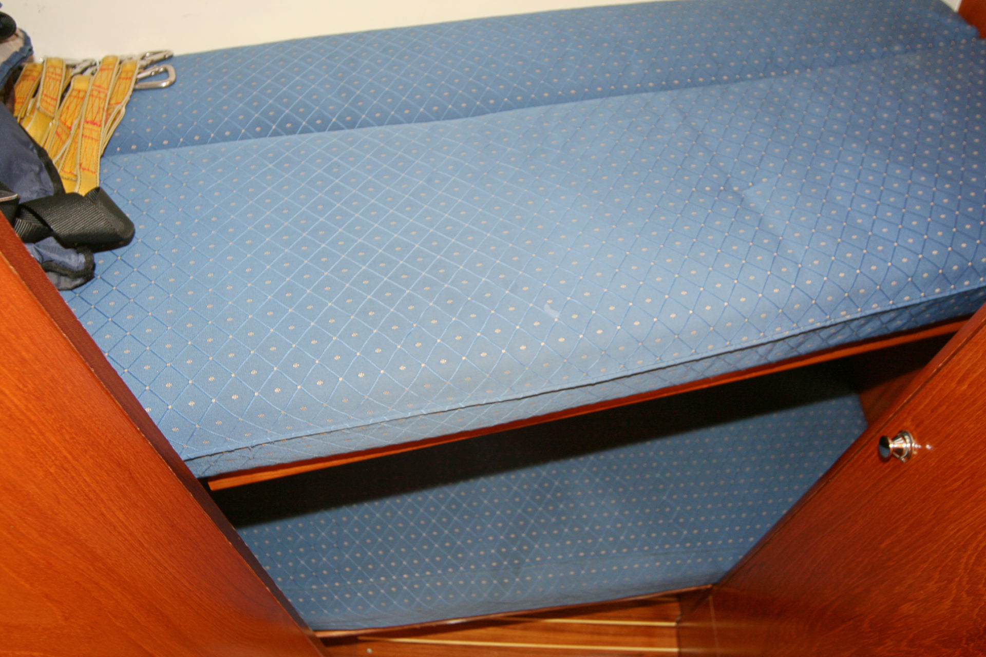 Sicherheit:Für die zulässige Personenzahl Automatikwesten (ohne Schrittgurte) und Lifebelts. Rettungsinsel, Notblitzleuchte, Halogenhandscheinwerfer, Preßluftnebelhorn, ab 12m elektr. BSH-Horn, Raketen- und Sanitätskasten, Lenzpumpen, Feuerlöscher, 2 Rettungsringe (1 mit Schwimmleine).