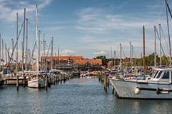 In der alten Kaufmannstadt, an der Ostküste von Jütland, finden Sie gute Einkaufsmöglichkeiten, wunderschöne Badestrände, für die Juelsminde weit bekannt ist, und natürlich einen großartigen Hafen, welcher 2012 zum dänischen "Hafen des Jahres" gewählt wurde. Mitten im Ort bestaunen Sie den Anker der Fregatte Jylland, welches sich aktuell als Museumsschiff in Ebeltoft befindet. Entspannen Sie hier bei einem typisch dänischen Eis oder dem Besuch einer der Restaurants nebenan. Erreichen können Sie Juelsminde mit dem PKW auf der Autobahn A7 Hamburg-Flensburg, über die dänische Grenze Richtung Arhus/Vejle bis zur Ausfahrt 60 N und anschließender Weiterfahrt auf der Route 170 nach Vejle N bzw. Route 23 nach Juelsminde.